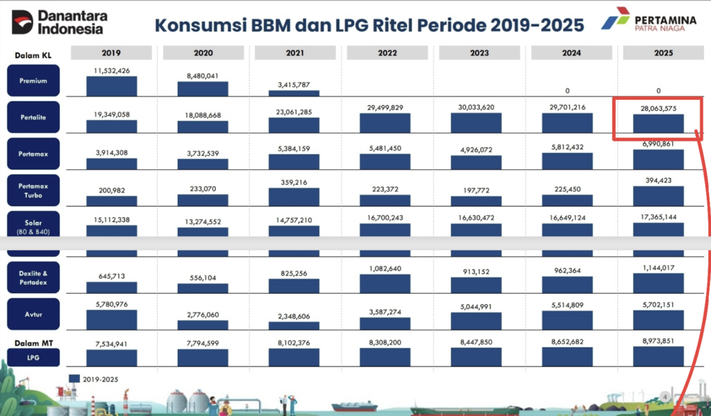 Konsumsi Pertalite: 28,06 juta kiloliter (KL) per tahun.